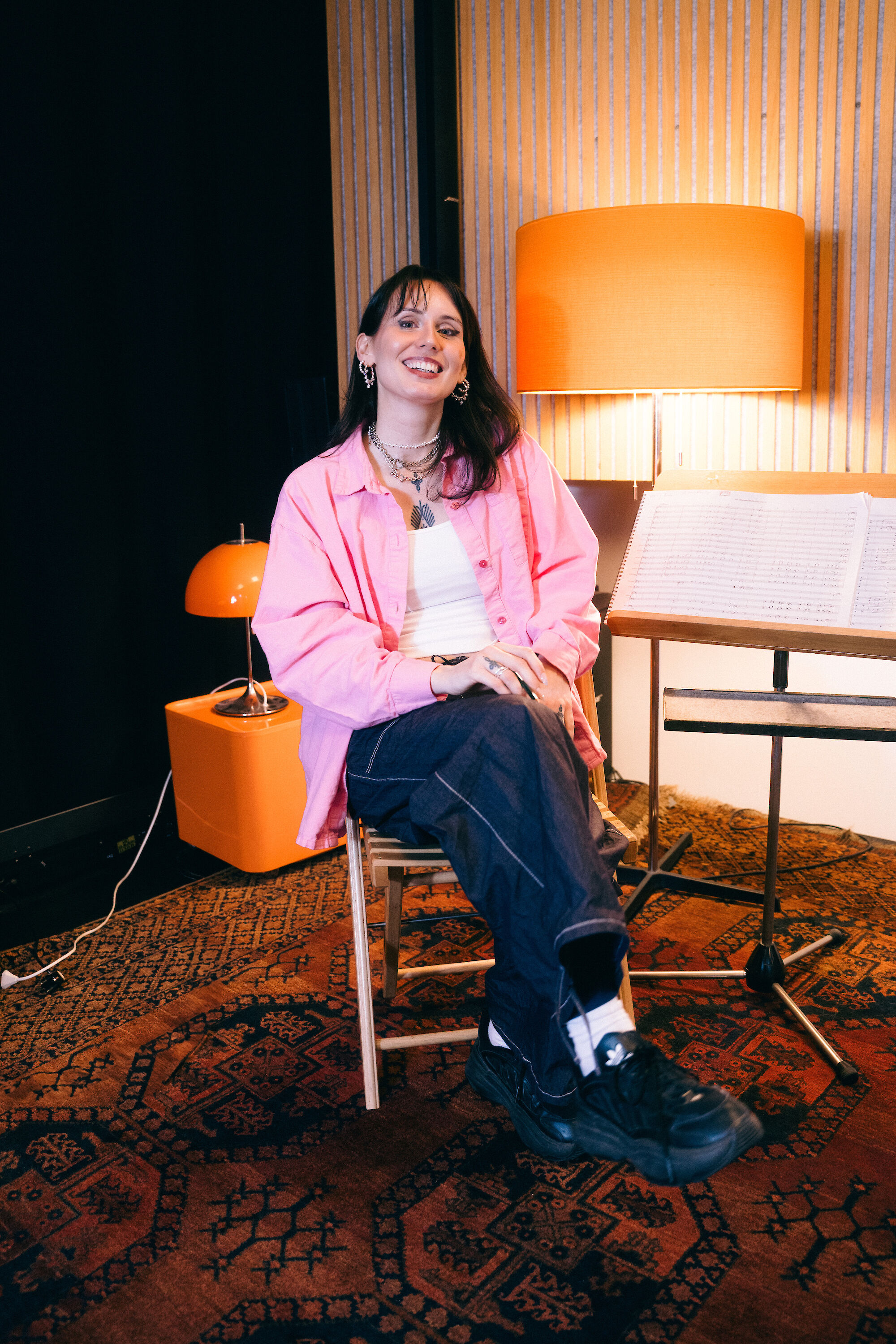Sie schreibt Musik und leitet die Band.