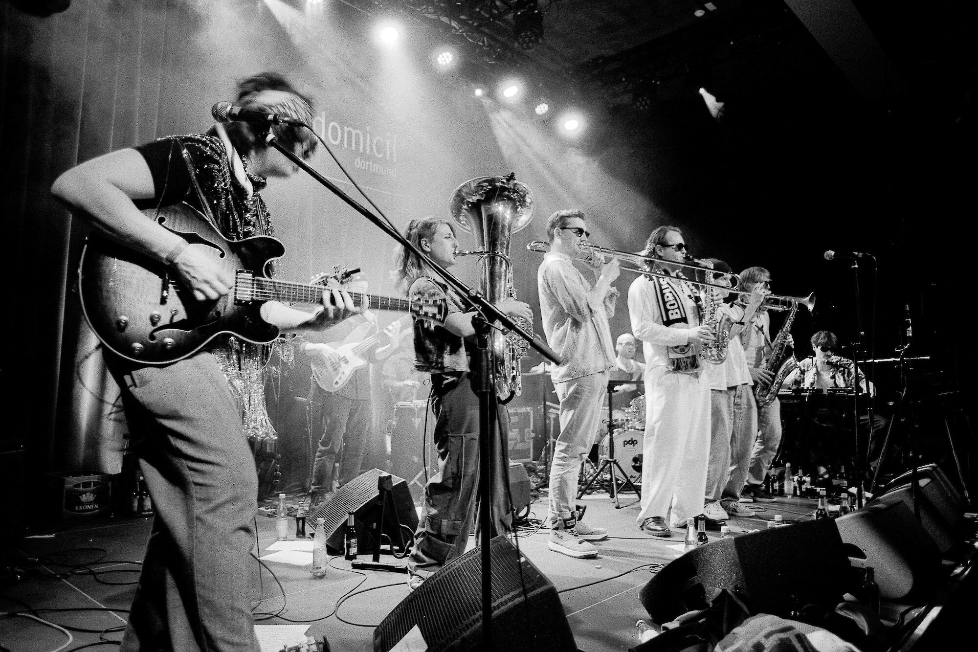 Zuletzt sorgte Dammnation mit "Studio 44“ für Aufsehen: zwei Abende in Folge war das domicil restlos ausverkauftund die Menschen feierten Nächte voller treibender Grooves, furioser Gitarrensoli und ausgelassener Euphorie. Ein Fiebertraum zwischen Funk, Jazz und Rock und ein klares Statement für die Strahlkraft der Band über die Stadtgrenzen hinaus.
